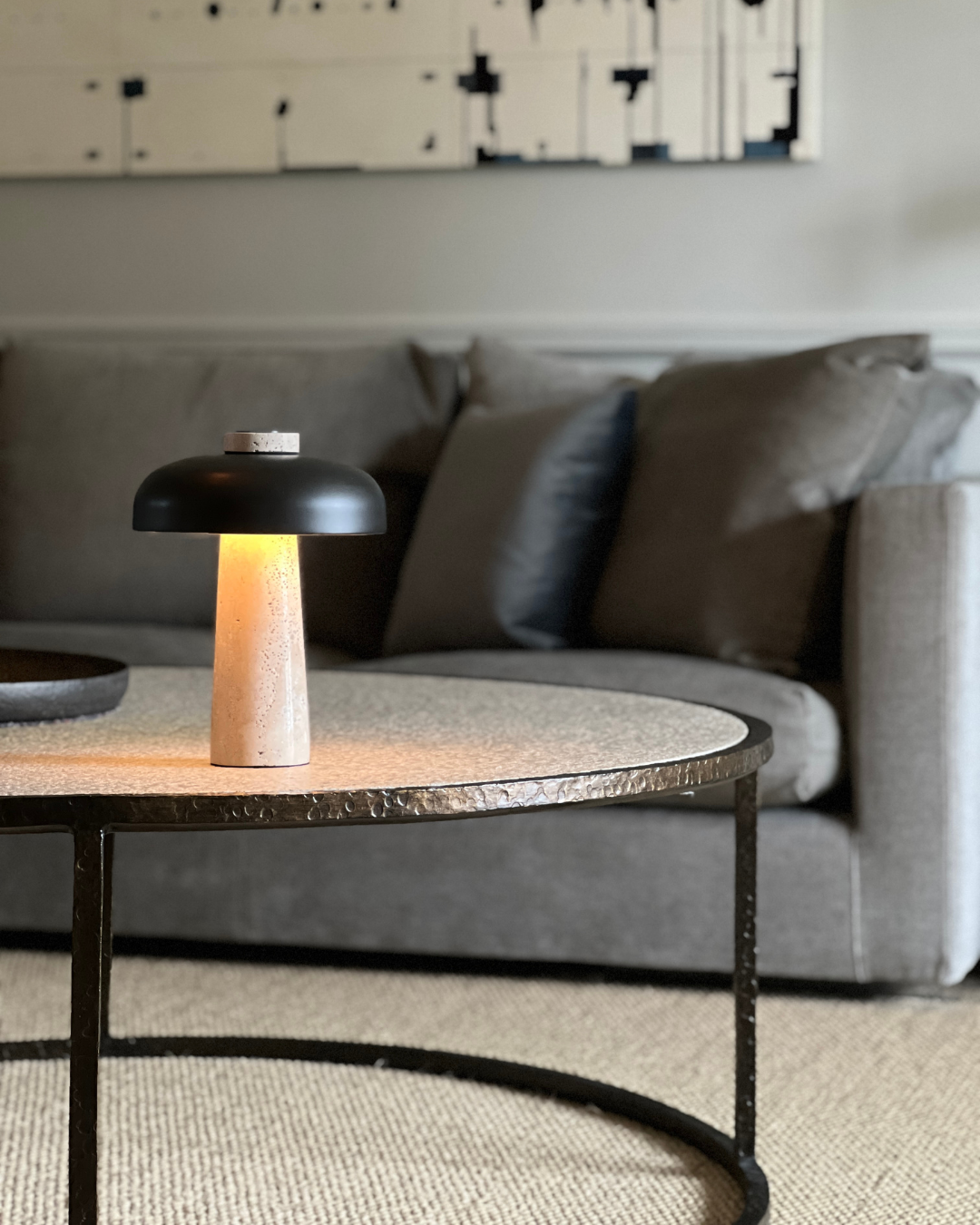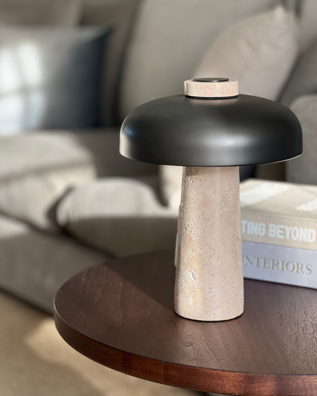 The NEW YORK rechargeable and portable table lamp features a matte black finish on the shade and a white stone stand, giving it a contemporary, statement presence. With a solid weight, dimmable light and clean lines, it is the perfect addition to any side, coffee, or console table. This versatile lamp can easily be moved around your home - the possibilities are endless.