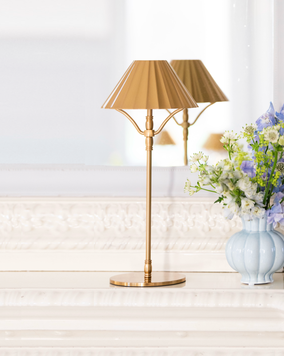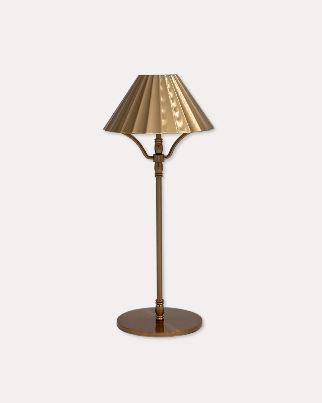 The PARIS rechargeable and portable table lamp features an elegant gold finish. With a solid weight and dimmable light, this lamp is ideal for al fresco dining or on the breakfast table to start your day.